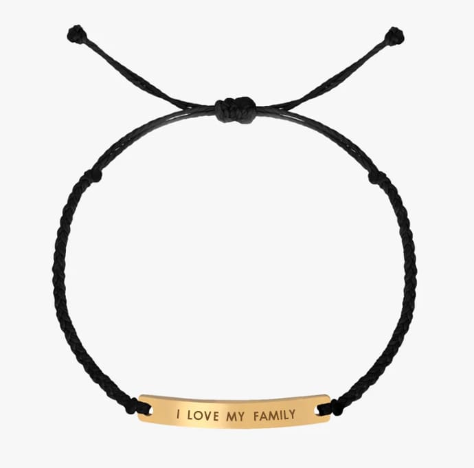 Brățară din aur galben de 14k model plat cu snur – se poate personaliza cu text gravat la interior sau exterior. Mărimi disponibile: brățările cu snur sunt reglabile pe orice dimensiune. Dimensiune placă aur: 4x30x1.5 mm. Greutatea de aur a brătării este de aproximativ 2.50 gr