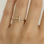 Inel Aur 14K cu Cruce Stilizată și Zirconii – Delicatețe și Credință