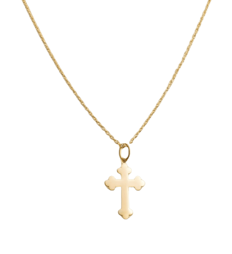 Acest pandantiv simplu și rafinat, realizat din aur galben de 14K, reprezintă un simbol clasic al credinței și al eleganței atemporale. Cu un design curat și liniar, este perfect atât pentru purtare zilnică, cât și pentru a fi oferit drept cadou cu semnificație specială.