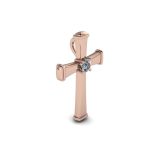 Pandant din aur roz de 14k, model cruce decorat cu o piatră strălucitoare, ideal pentru a adăuga o notă de rafinament și simbolism oricărei ținute. Realizat cu atenție la detalii, acest pandant subliniază frumusețea și căldura aurului roz, în timp ce piatra îi conferă un strop de strălucire suplimentară. Designul clasic al crucii face ca acest pandant să fie potrivit atât pentru purtarea zilnică, cât și pentru ocazii speciale.