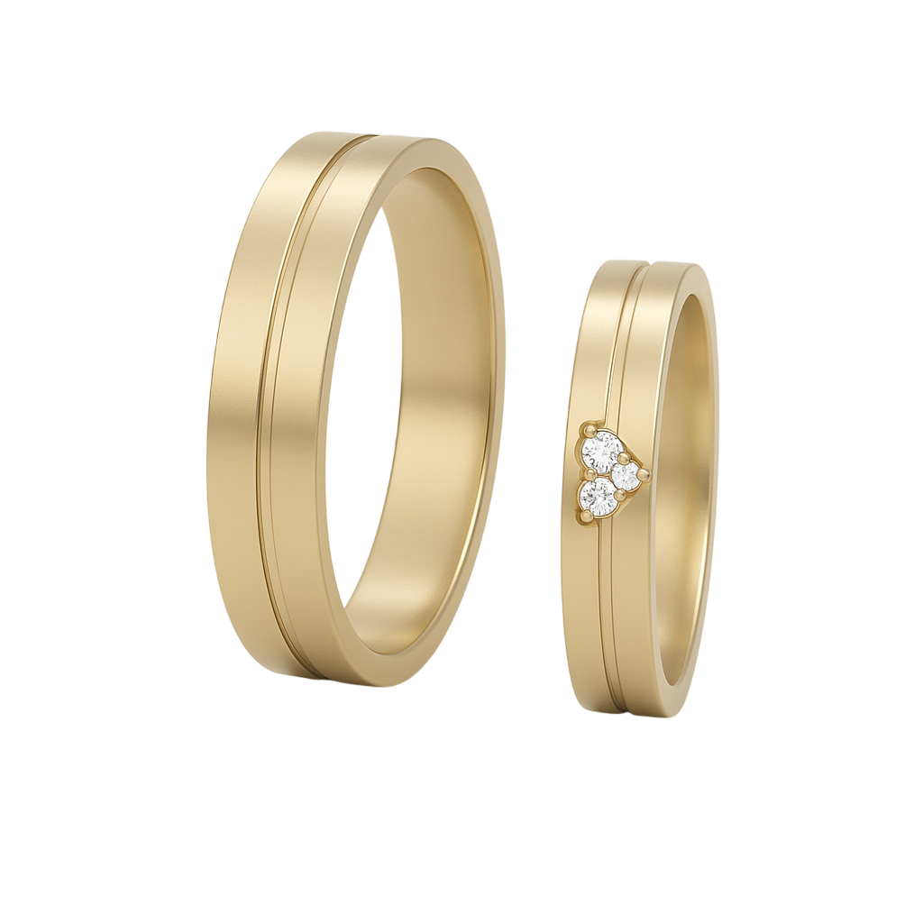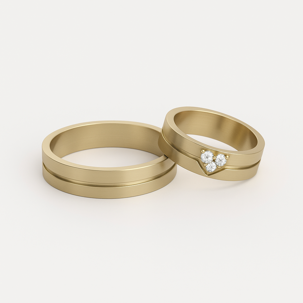 Verigheta damă/bărbat din aur galben, creată pentru a celebra iubirea și angajamentul într-un stil clasic, dar atemporal. Realizată din aur galben de 14k, această verighetă se remarcă prin designul său elegant, cu un finisaj lucios sau satinat, ce evidențiază căldura și rafinamentul aurului galben. Atât lățimea, cât și dimensiunea pietrei pot fi ajustate pentru a se potrivi perfect dorințelor voastre, asigurând o verighetă confortabilă și personalizată pentru fiecare dintre voi.